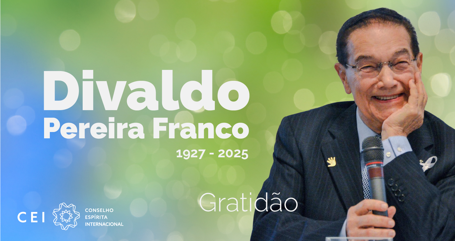 O Conselho Espírita Internacional (CEI) e os países que o integram expressam, com profunda emoção e sentida saudade, o desencarne de Divaldo Pereira Franco, ocorrido no dia 13 de Maio de 2025, aos 98 anos de idade.